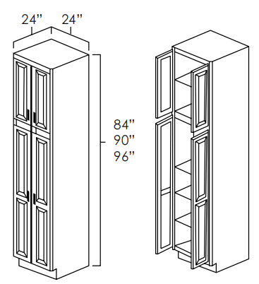 Carlton - 30" Base Microwave Cabinet. It Measures 24"W X 24"D X 84"H.Finished Solid Wood Front. 1 Soft-Close Drawer. Dovetail Drawer Construction. Solid Wood Construction, Four Adjustable Shelves Can Be Used In Either The Top Or Bottom Section.