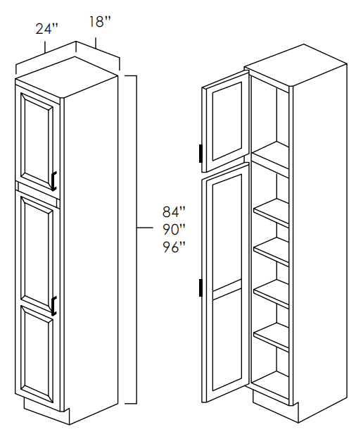 Madison - 30" Base Microwave Cabinet. It Measures 18"W X 24"D X 84"H.Finished Solid Wood Front. 1 Soft-Close Drawer. Dovetail Drawer Construction. Solid Wood Construction, Four Adjustable Shelves Can Be Used In Either The Top Or Bottom Section.